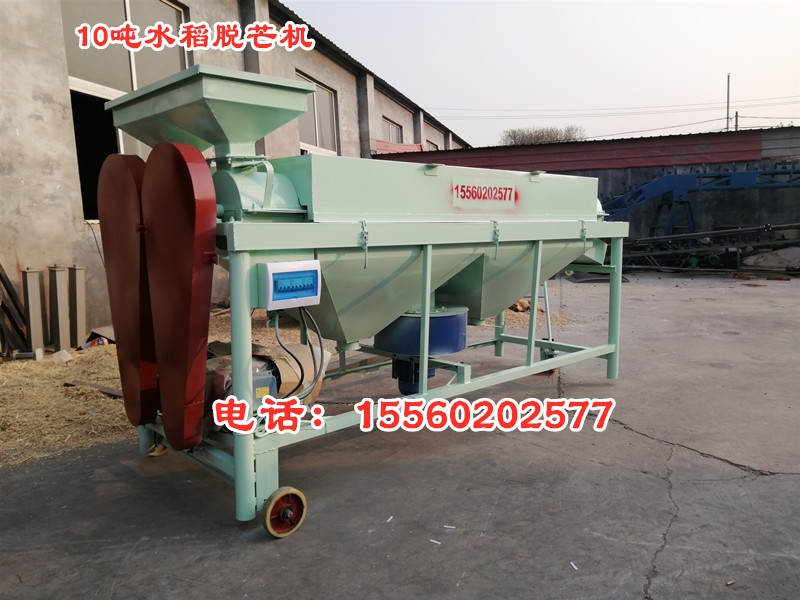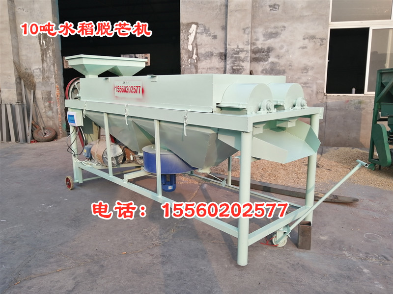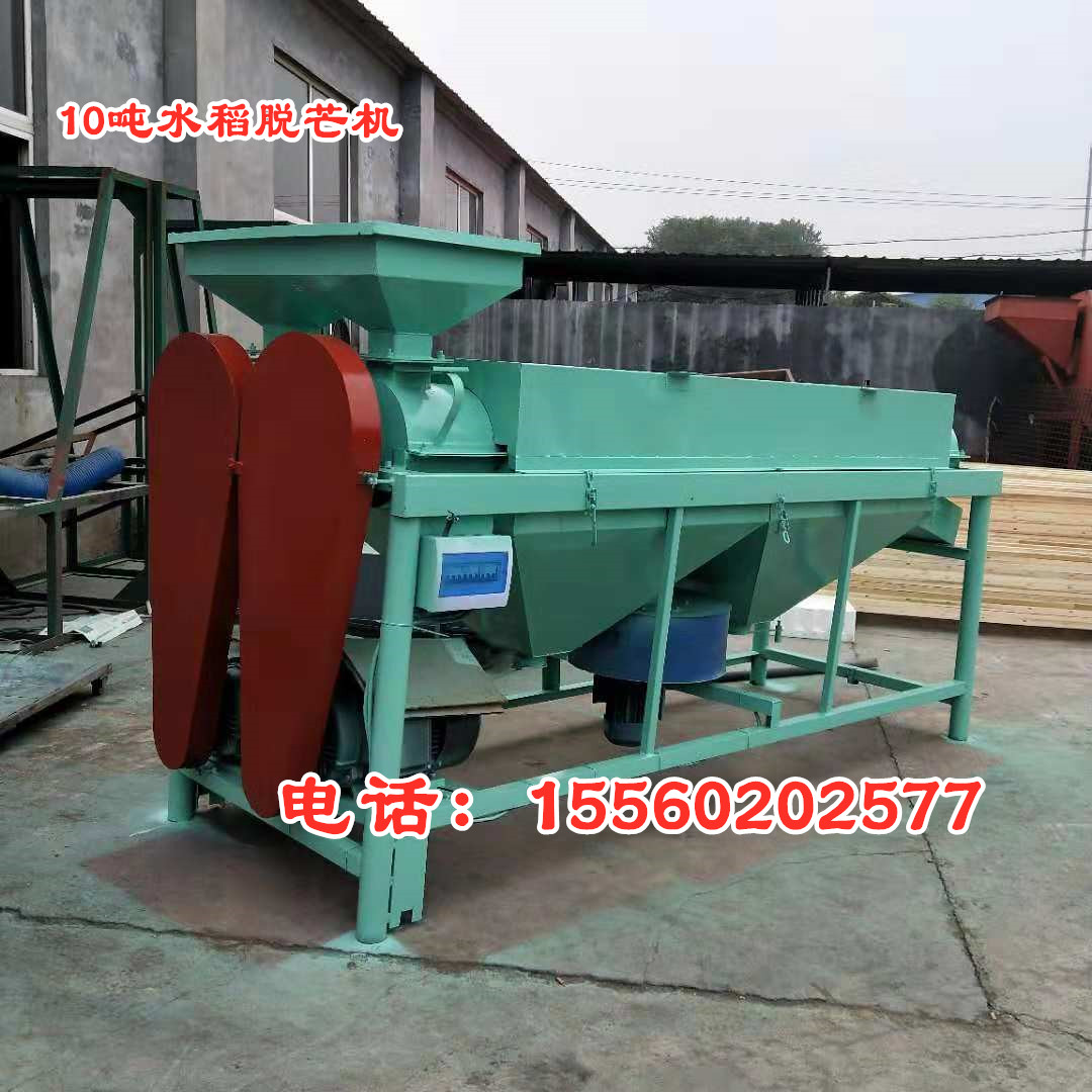 水稻除芒機,是一種專門用于對帶芒水稻種子及其它帶芒刺種子進行芒、刺處理的機具。適用于種子加工成套設備的配套使用。 結構特點  該機主要由:機殼、傳動軸、打桿、活門調節裝置、驅動裝置等部件組成。采用旋轉打桿及其配合的內襯耐磨板,對種子表面施加搓擠、打擊作用,以除去芒、刺毛、松散的穎片及未脫凈的穗頭、莢殼等。通過清除芒、刺,改善了種子的表面,有利于種子加工的下道工序的作業。